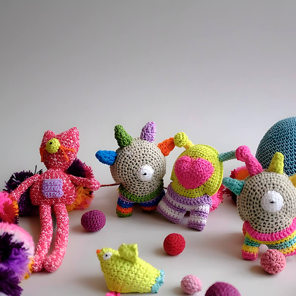 Monstruo tejido con hilaza de algodón , relleno de fibra de pet.