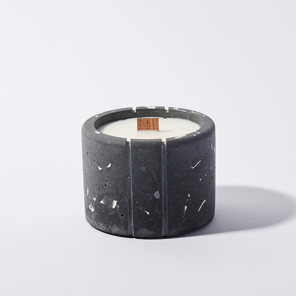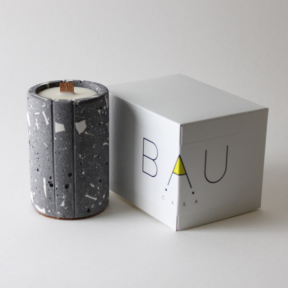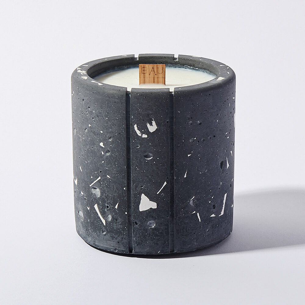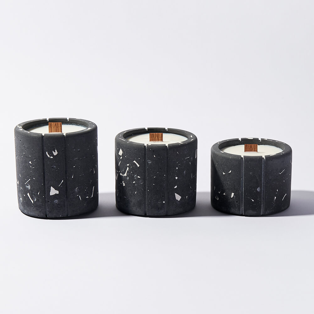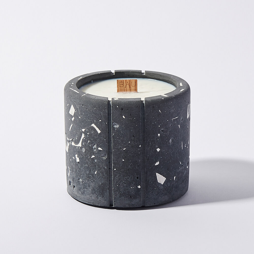 Vela con cera de soja de fragancias naturales, pabilo de madera, envase de terrazo, todo hecho de manera artesanal y 100% mexicano